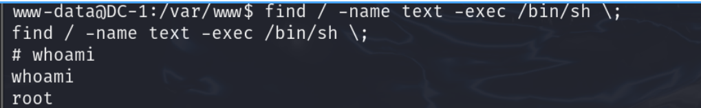 touch一个text文件假装查找,执行find语句之后立刻能切换到root权限