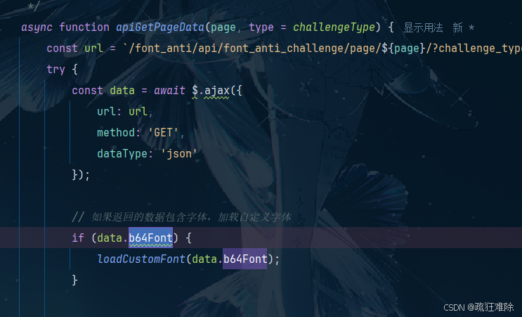async function apiGetPageData(page, type = challengeType) {let b64Font="aaaaa"loadCustomFont(b64Font);}apiGetPageData()
