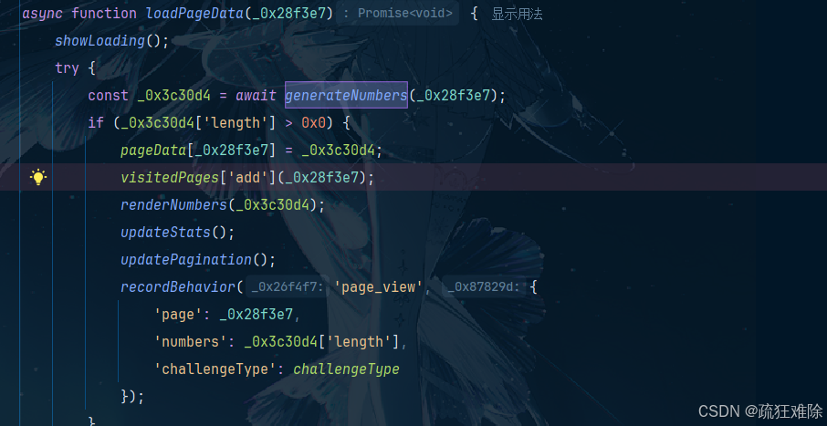 获取数据失败,有点意思,而且是一个函数generateNumbers函数