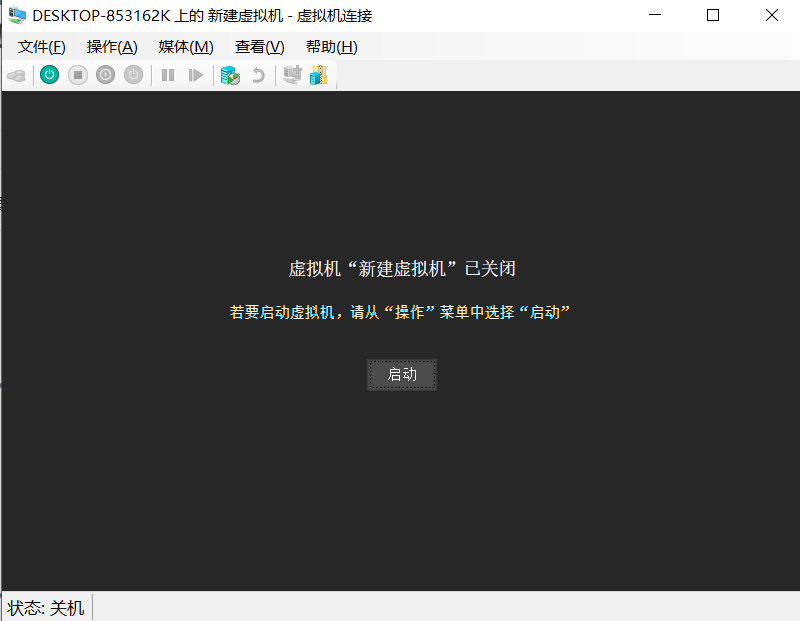 在VirtualBox主界面,选择配置好的虚拟机,点击"启动"按钮(绿色箭头图标)。