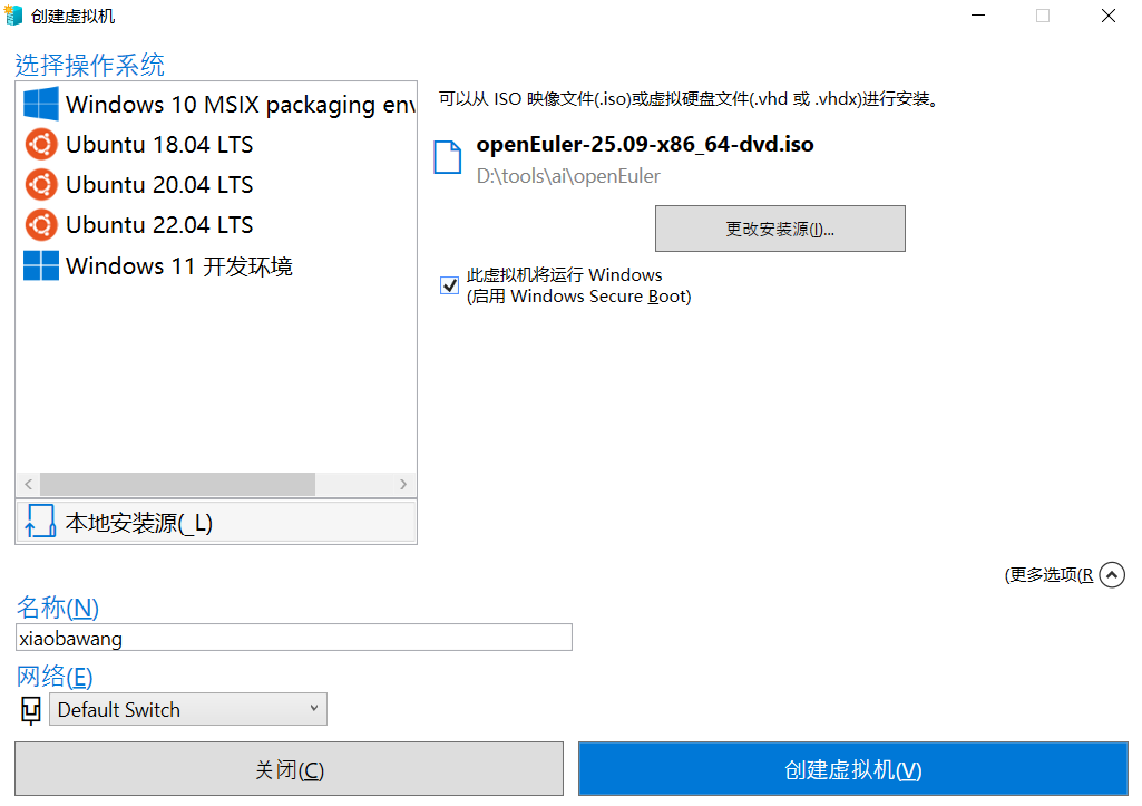 输入虚拟机的名称(如"openEuler-25.09")