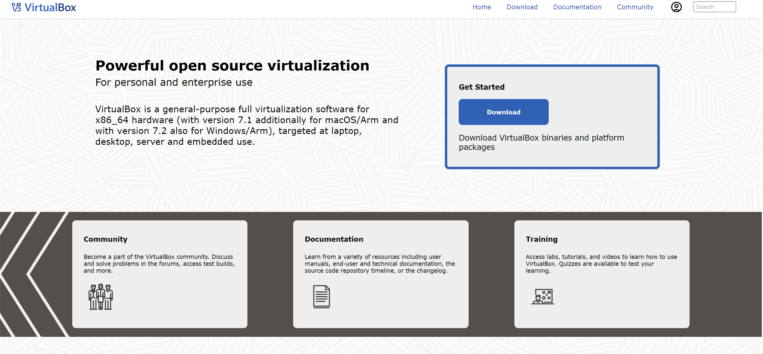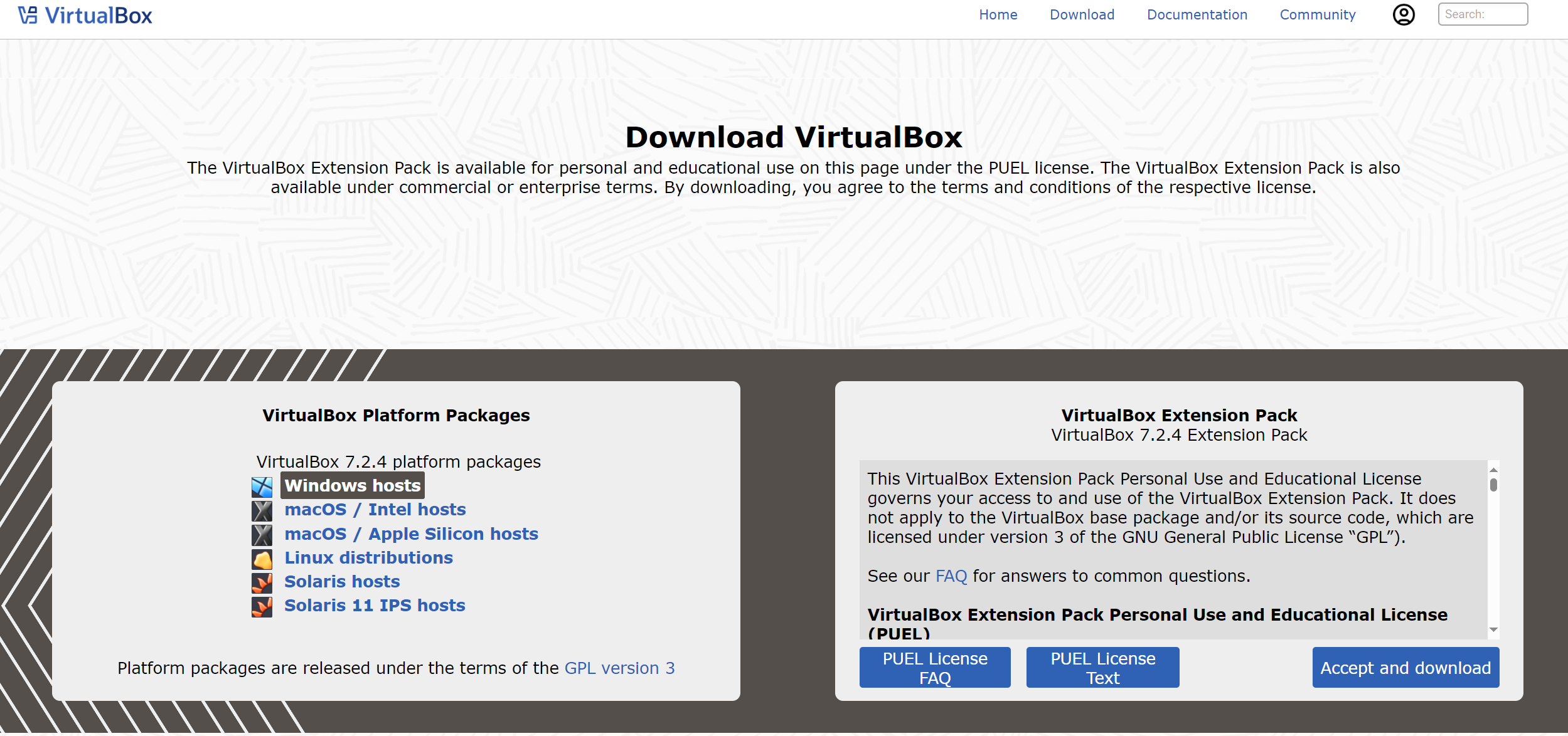 访问VirtualBox官网(https://www.virtualbox.org/),点击"Windows hosts"下载最新的安装程序。