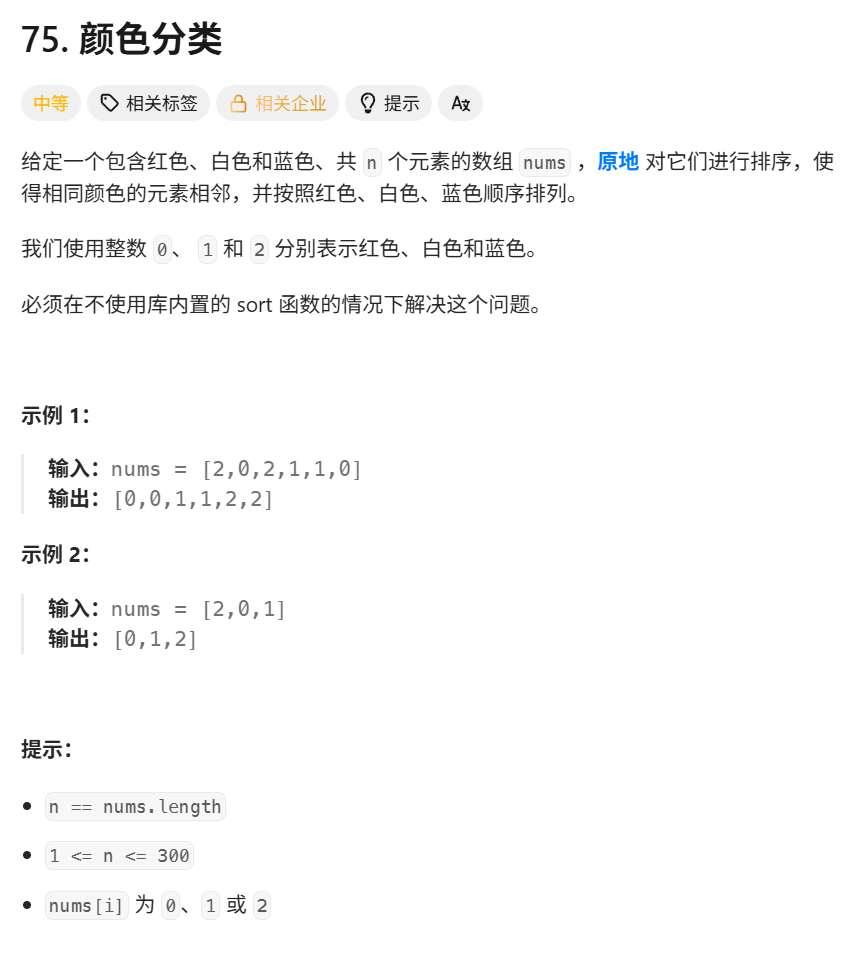 leetcode75颜色分类