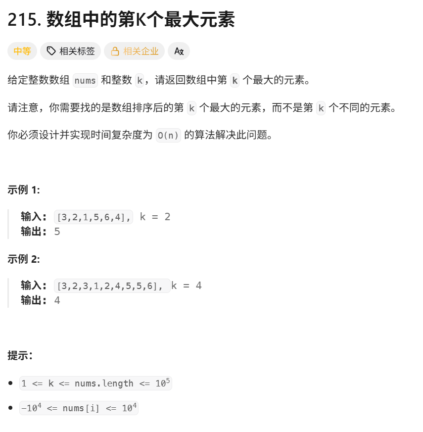 };leetcode215数组中的第K个最大元素