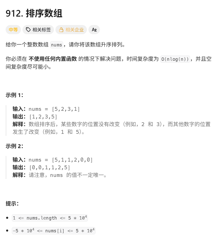 };leetcode912排序数组