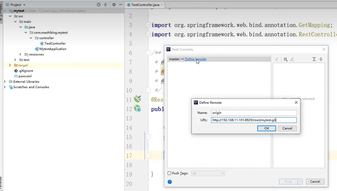 把代码 push到 http://192.168.11.101:8929/root/mytest.git 中