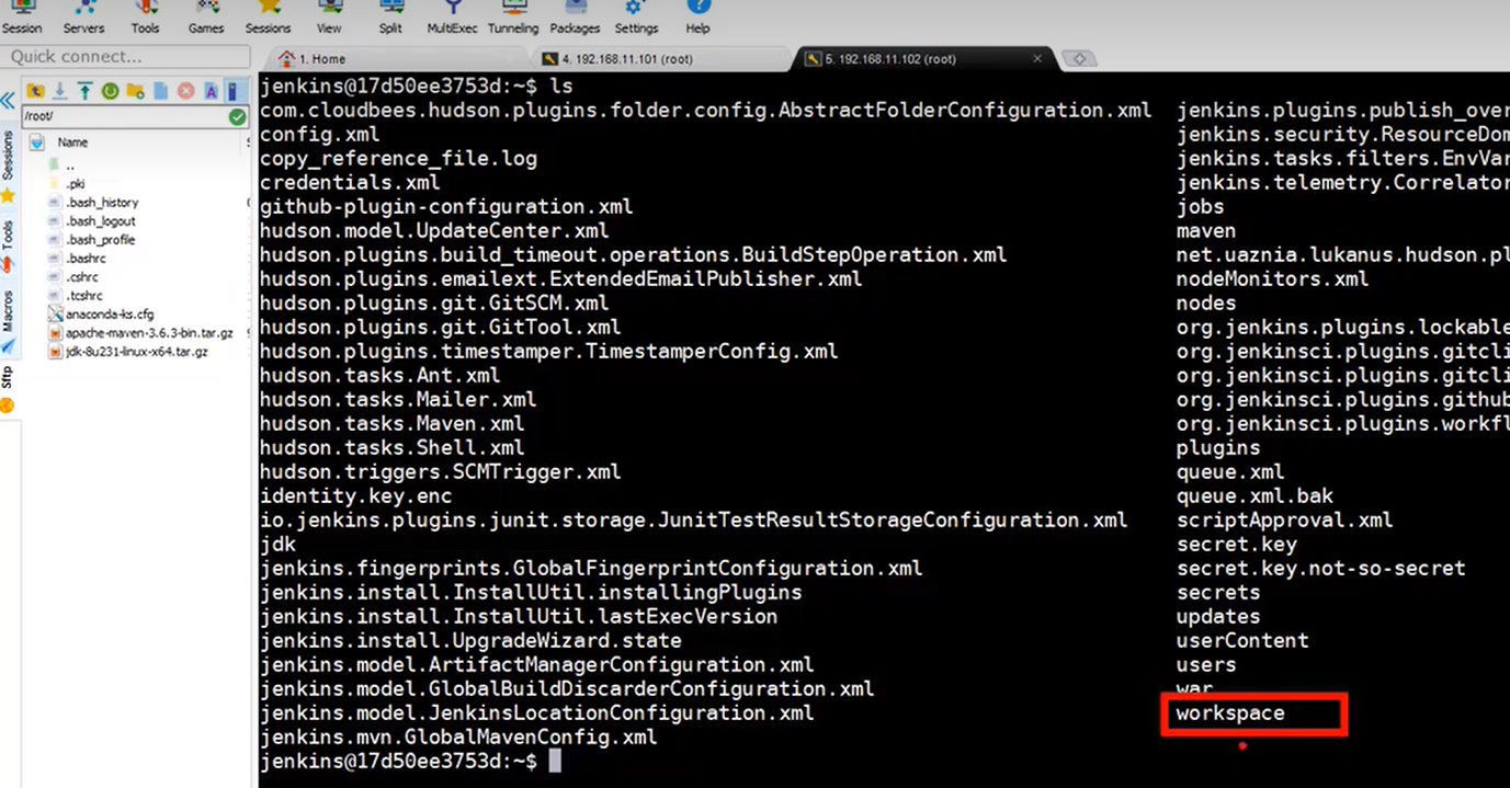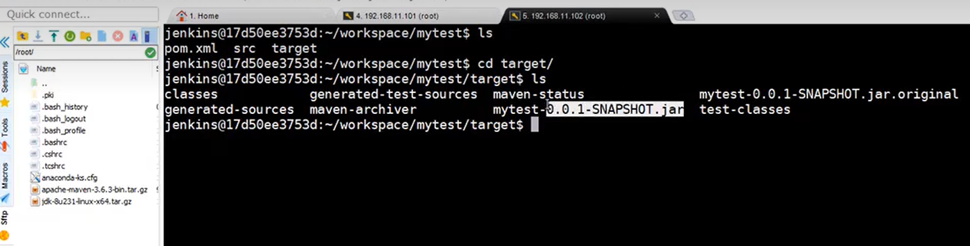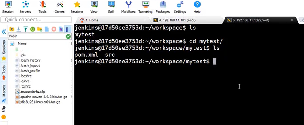 为了确定 mytest 项目的代码是否已经放入到 Jenkins本地,我们可以进入Jenkins容器里进行查看,