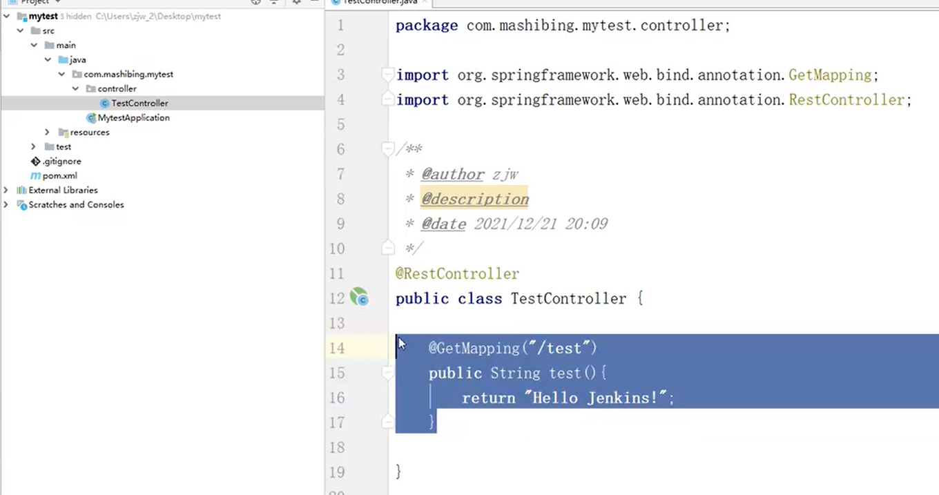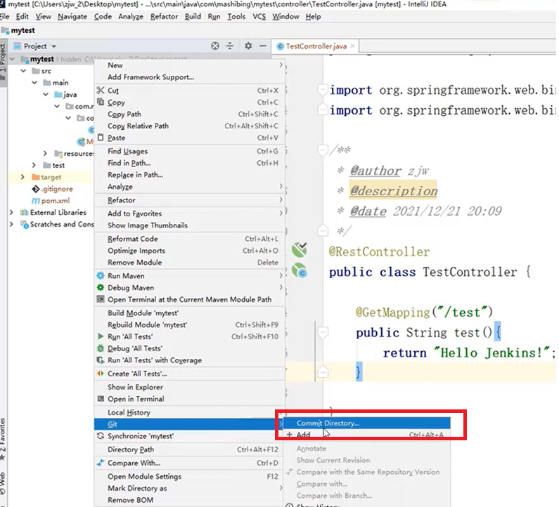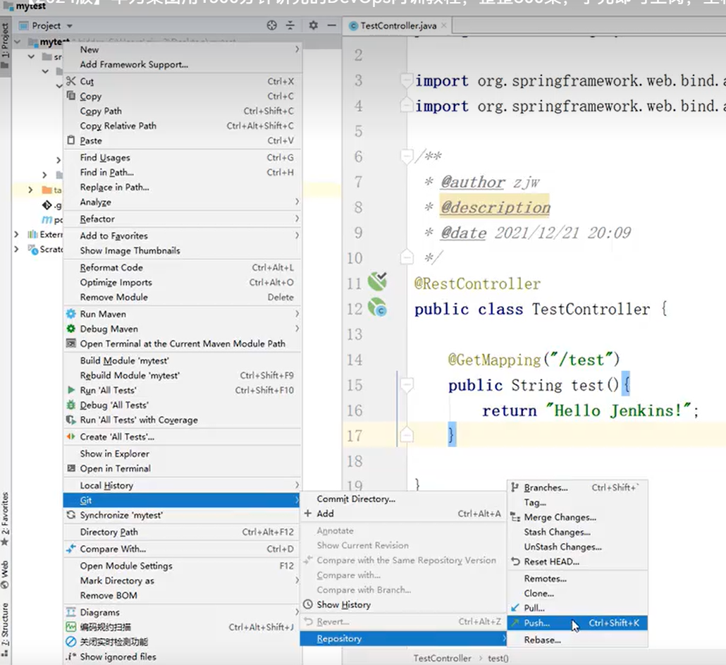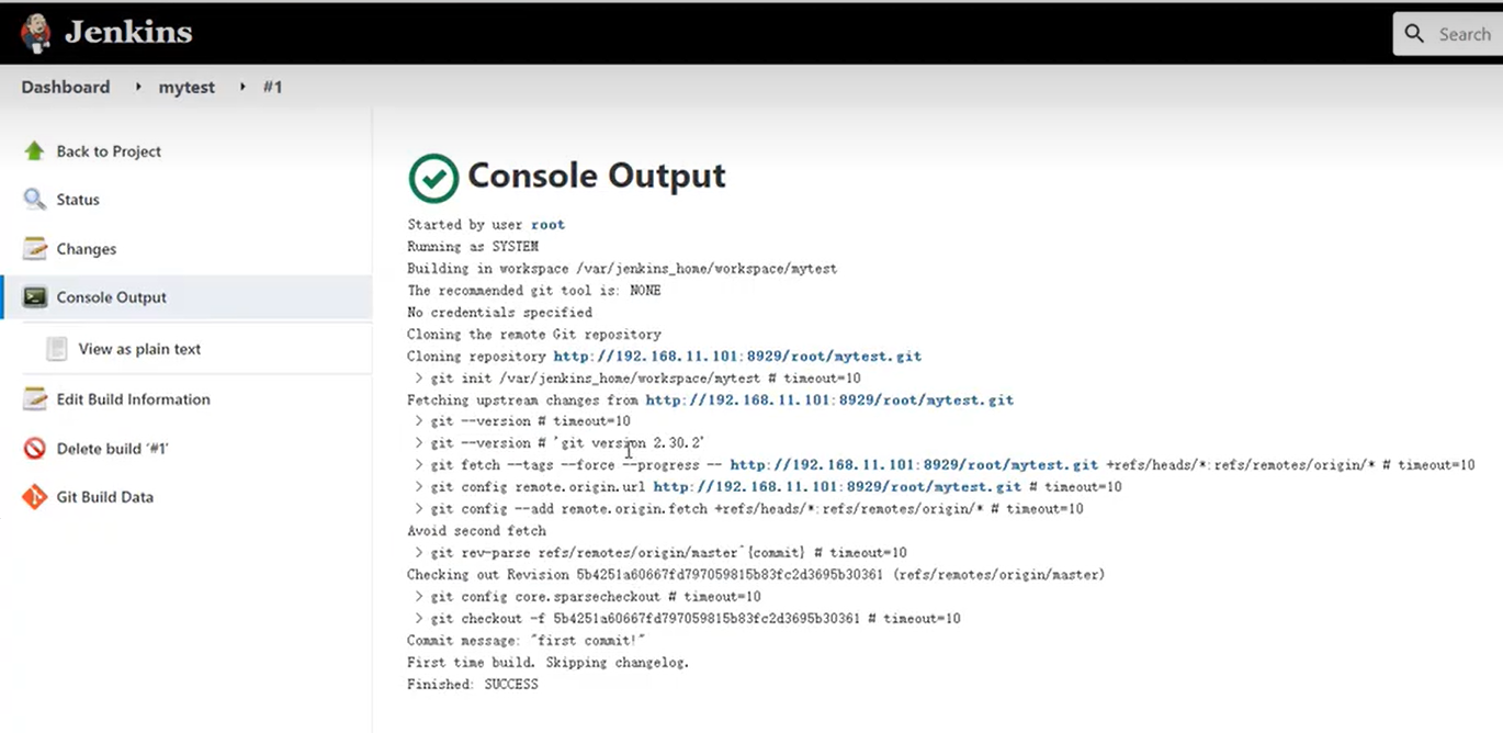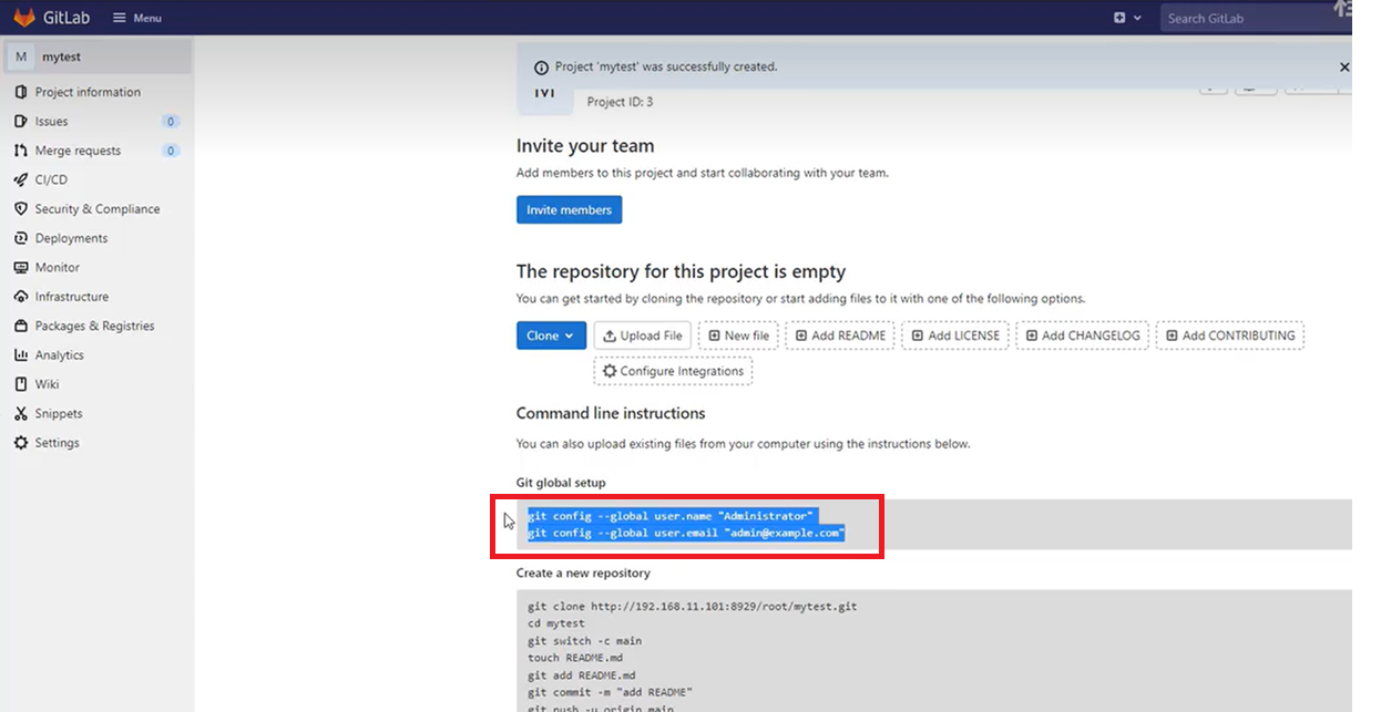 此章节的主要目的:首先将“新建的项目(mytest)” push到 Gitlab上,然后通过Jenkins拉取Gitlab中mytest项目代码到Jenkins本地,再通过Jenkins把mytest项目通过maven进行构建,最后将构建的程序发布到目标服务器的过程。