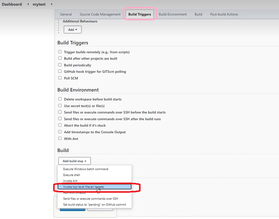 2、将Jenkins本地mytest项目,通过 Maven将项目构建成一个Jar包