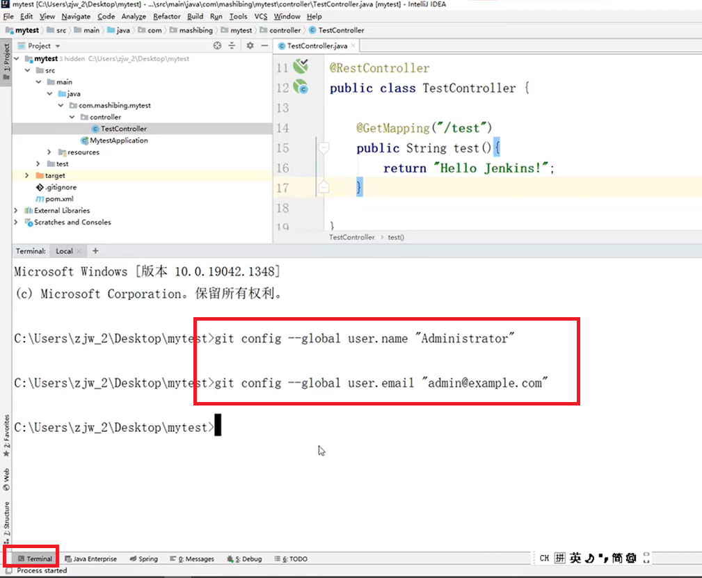 打开 Idea软件,在Idea中的 terminal 中输入如下内容: