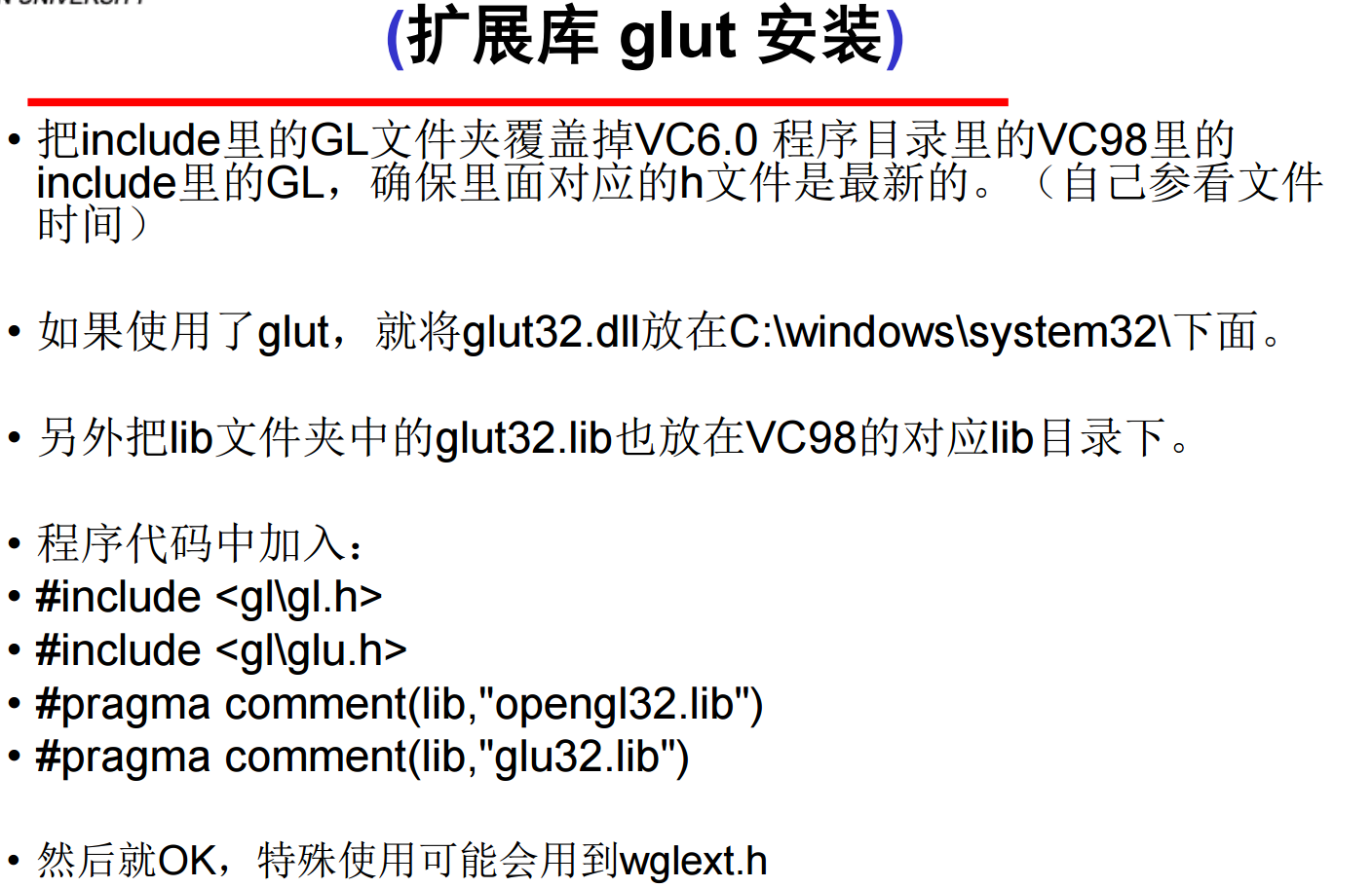 对于#define,大多数常量是在包含文件gl.h、glu.h和glut.h中定义的,而#include <GL/glut.h> 会自动包含其他头文件,如glBegin(GL_POLYGON)、glClear(GL_COLOR_BUFFER_BIT)。include文件当然还定义了OpenGL的数据类型如GLfloat、GLdouble等等。
