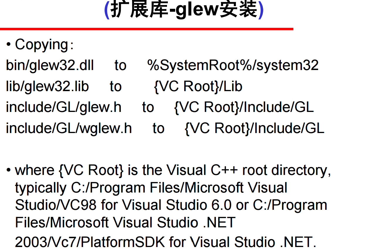 5、此外,OpenGL Extension Wrangler Library(扩展库,glew库)也需要额外说明,它使得访问特定系统上可用的OpenGL扩展变得容易、避免了在Windows代码中设置特定的入口点,应用程序只需包含glew.h并运行glewInit()即可。比如,针对window只支持OpenGL1.1的函数的问题(如果要使用后续版本OpenGL的高级特性,就必须下载最新的扩展)、不同的显卡公司会发布一些只有自家显卡才支持的扩展函数的问题(不得不去寻找最新的glext.h),都可以用一个glew.h头文件解决,你就能使用gl、glu、glext、wgl、glx的全部函数。