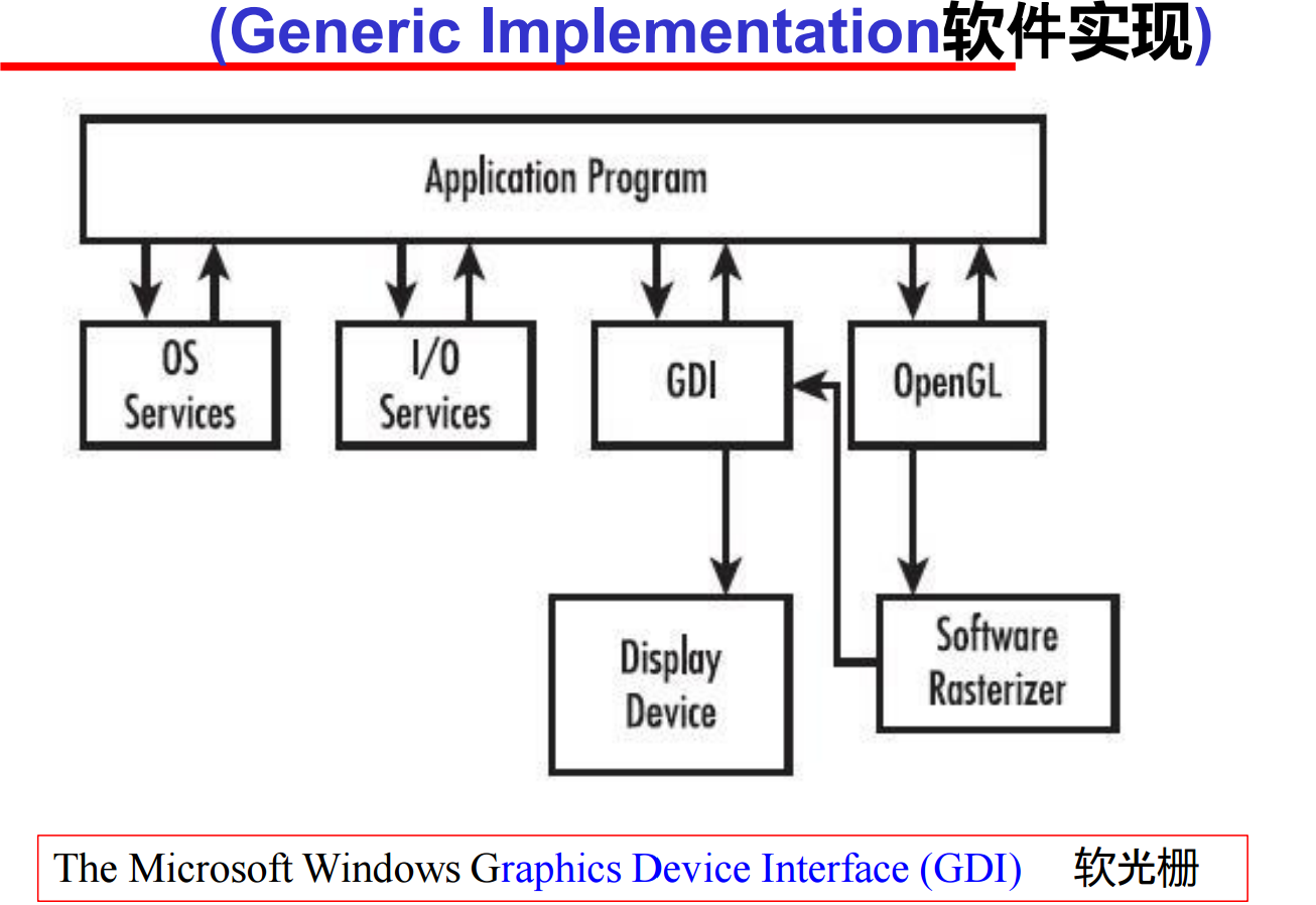 硬件实现和上图几乎一样,就是Software改成Hardware,Hardware的出箭头指向Display Device,且新增了Display Device到GDI的箭头。