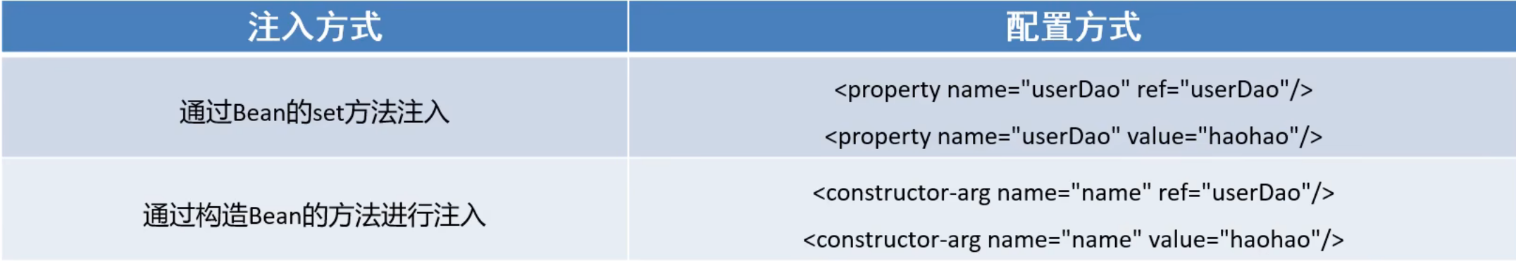 Bean的依赖注入有两种方式: