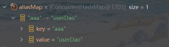 <alias name="userDao" alias="aaa"></alias>在beanFactory中维护着一个名为aliasMap集合,存储别名和beanName之间的映射关系