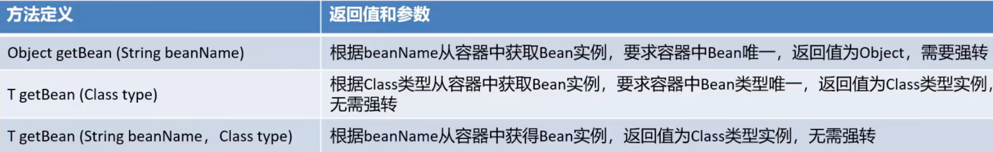 // 根据beanName获取容器中的Bean实现,需要手动强转