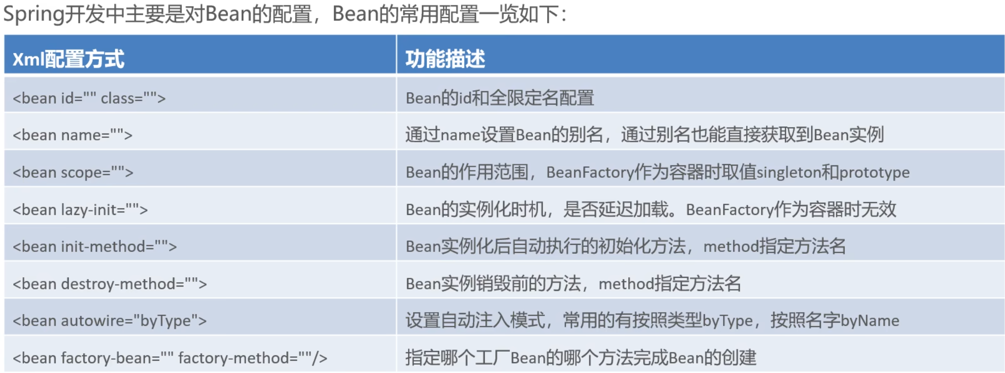 1,Bean的常用配置概览
