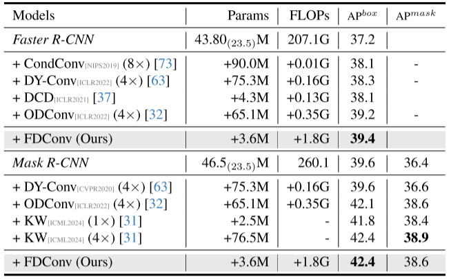 | FDConv | +3.6M | 42.4 | 38.6 |