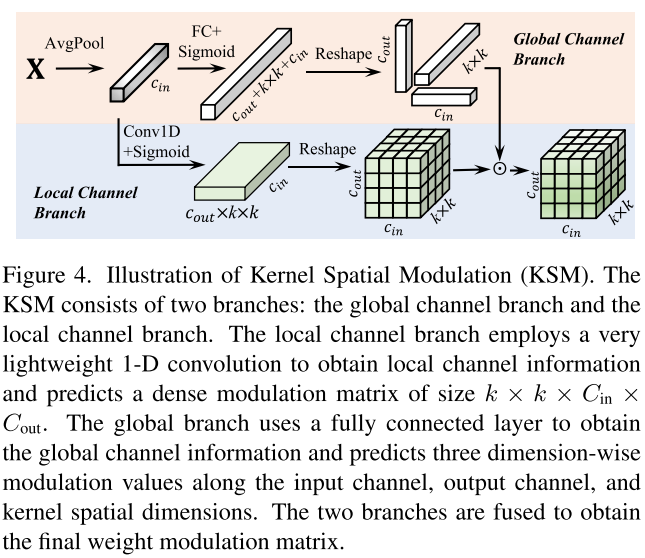- 预测三个维度的调制值:输入通道、输出通道和核空间维度