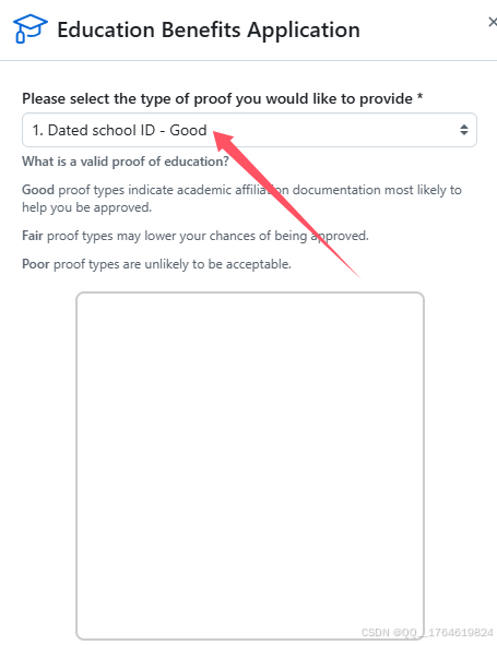 稍后会显示Continue,点击Continue后显示如下界面,然后请选择学生证上传。