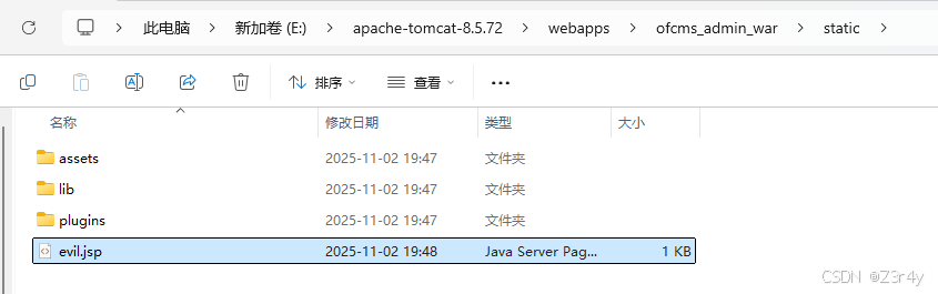 file_name参数设置为../../../static/evil.jsp,目录穿越上传写入恶意文件