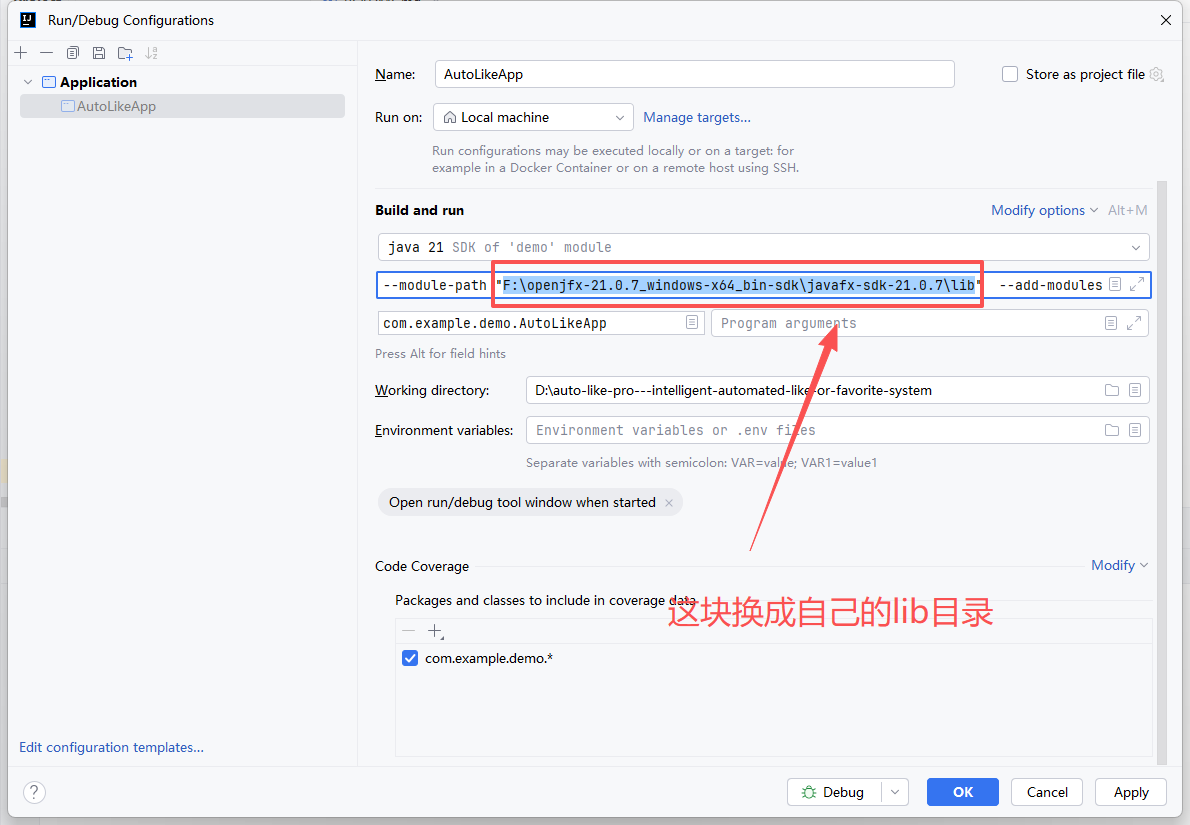 --module-path "F:\openjfx-21.0.7_windows-x64_bin-sdk\javafx-sdk-21.0.7\lib" --add-modules javafx.controls,javafx.fxml,javafx.web,javafx.swing,javafx.media