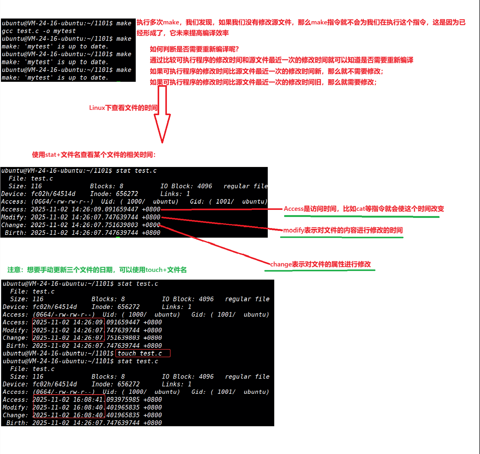 连续的make我们发现不会重复编译,如何判断是否需要重新编译呢?