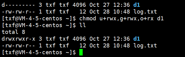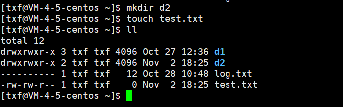 chown txf:txf test.txt : 一次性修改文件拥有者和所属组