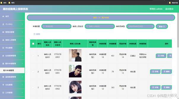 图5.3 配件申请管理页面