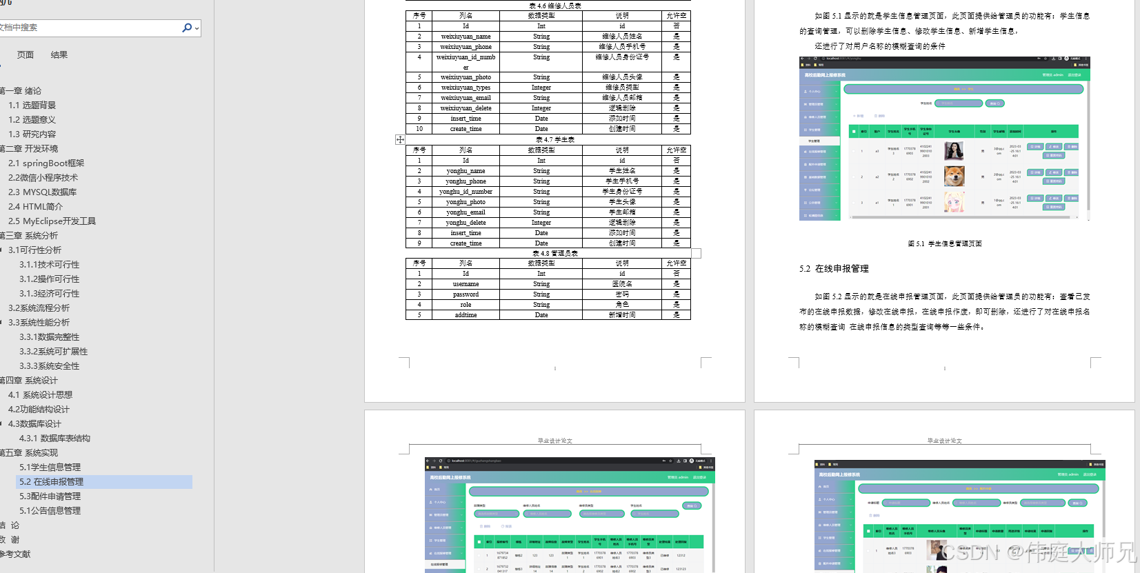(1)图4.4即为报修这个实体所拥有的属性值。