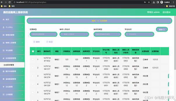 高校后勤报修系统|物业管理|基于SprinBoot+vue的高校后勤报修系统(源码+数据库+文档)