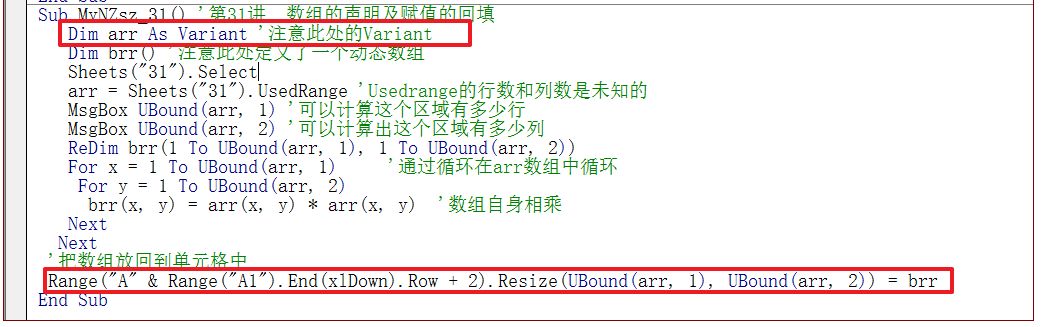 第三十一讲 VBA数组声明及赋值后的回填方法