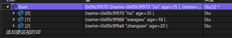 {struct Stu arr[3] = { {"zhangsan",20},{"lisi",35},{"wangwu",18} };int sz = sizeof(arr) / sizeof(arr[0]);qsort(arr, sz, sizeof(arr[0]), cmp_stu_by_name);