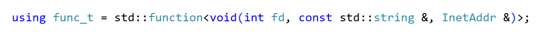 #include "inet_addr.hpp"using namespace log_module;const int default_sockfd = -1;using func_t = std::function<void(int fd, const std::string &, InetAddr &)>;class server