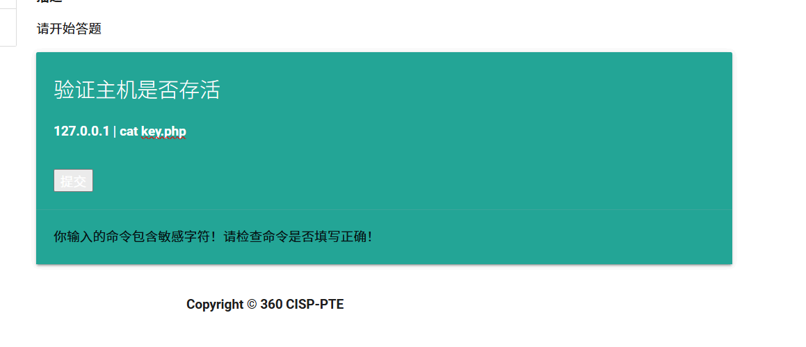 输入cat key.php,提示包含敏感字符,过滤了cat,