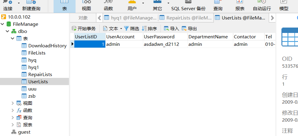 看配置文件,有账号密码,数据库是sqlserver,我们连接这个数据库