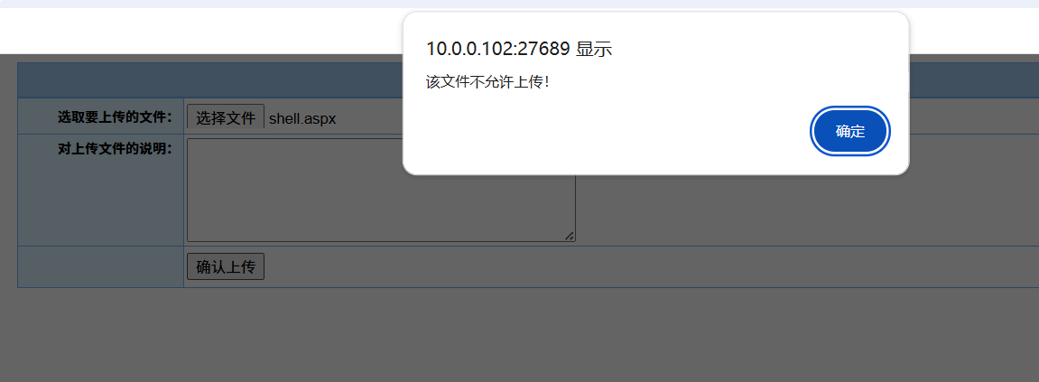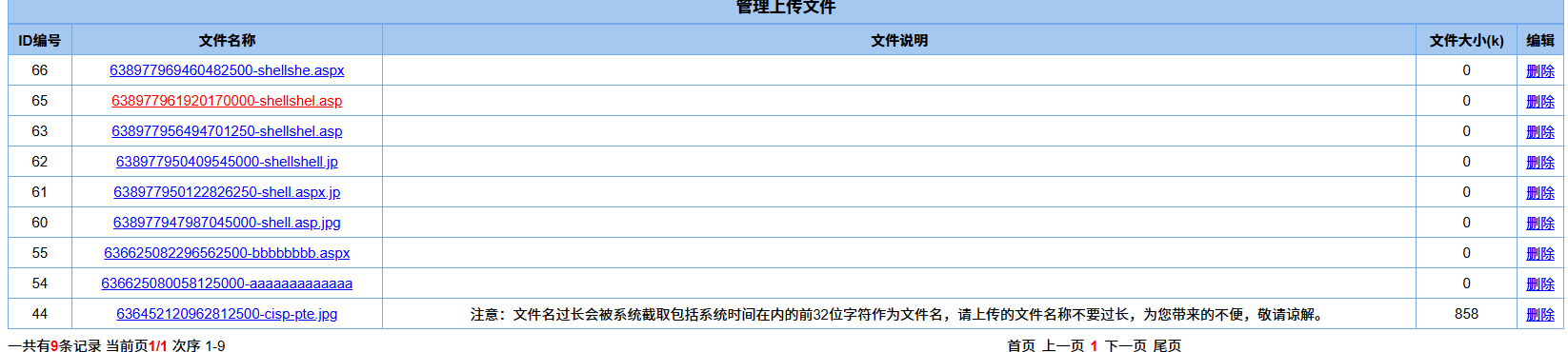 经过多次测试,文件名达到8位字符时,就可以省略后面的jpg,因为页面中说了文件名过长会被系统截取包括系统时间在内的前32位字符作为文件名,请上传的文件名称不要过长.时间是18个字符,杠一个字符,.aspx5个字符,总共24字符,32-24=8,说明文件名要8位字符,才能把.jpg后面都被系统截断
