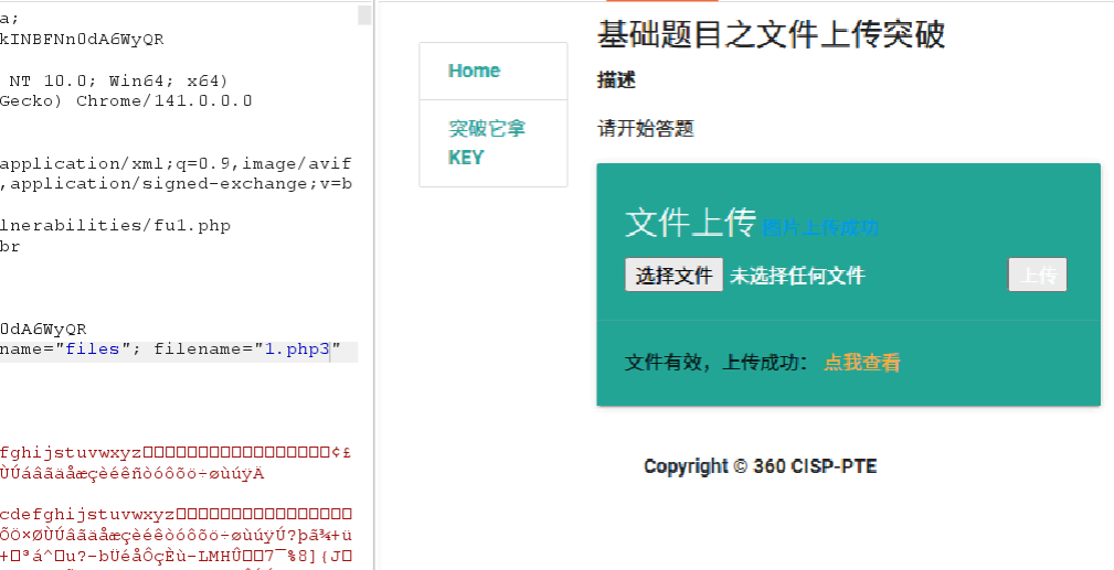 上传.jpg .php3 .php4 .php5格式的文件都可以上传,.php文件上传无响应,说明waf过滤了.php文件,然后我们就可以采用图片码的格式来上传文件。