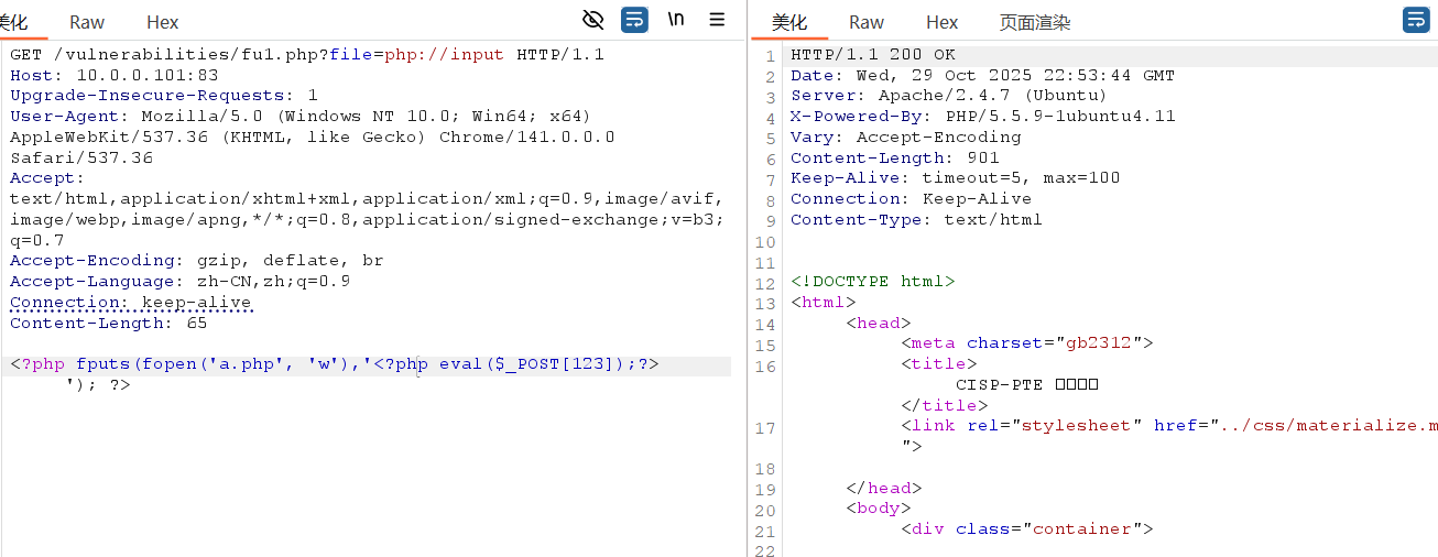 然后我们在尝试下本地文件包含,可以用伪协议写入