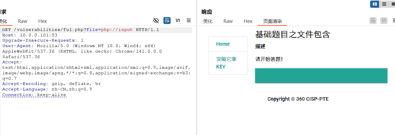首先测试php://input,看可不可以用伪协议,有输出就说明可以用