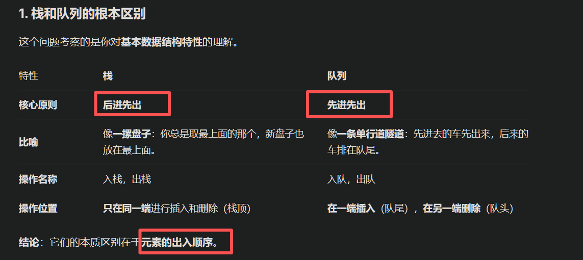 1.那个栈和队列他们的有什么区别?就是如果我给你两个栈,你能实现一个跟一个队列相似的功能吗