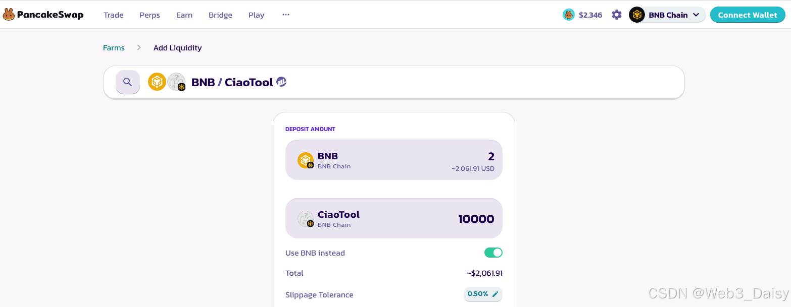 | 钱包 & BNB | 用于加池和支付手续费 |