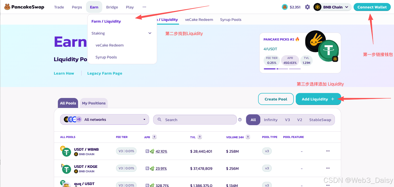 连接钱包(Metamask / TrustWallet / 钱包支持 BSC)