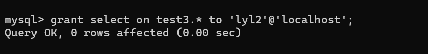 (4)lyl2用户终端查看授权后lyl2的权限并验证: