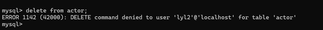 drop user 'lyl1'@'localhost';-- 验证删除结果