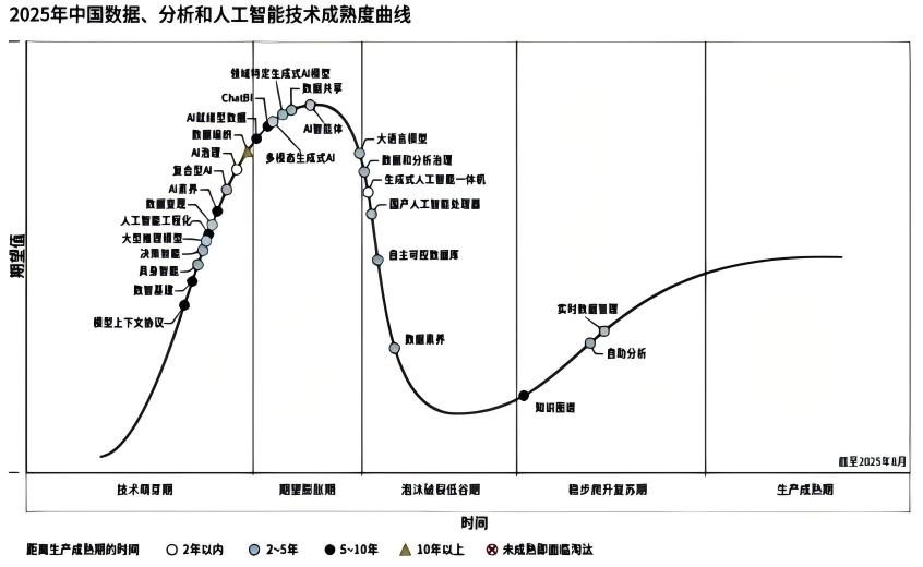 2025年10月,Gartner发布《2025 年中国数据、分析和人工智能技术成熟度曲线》,为企业数智转型提供明确方向。