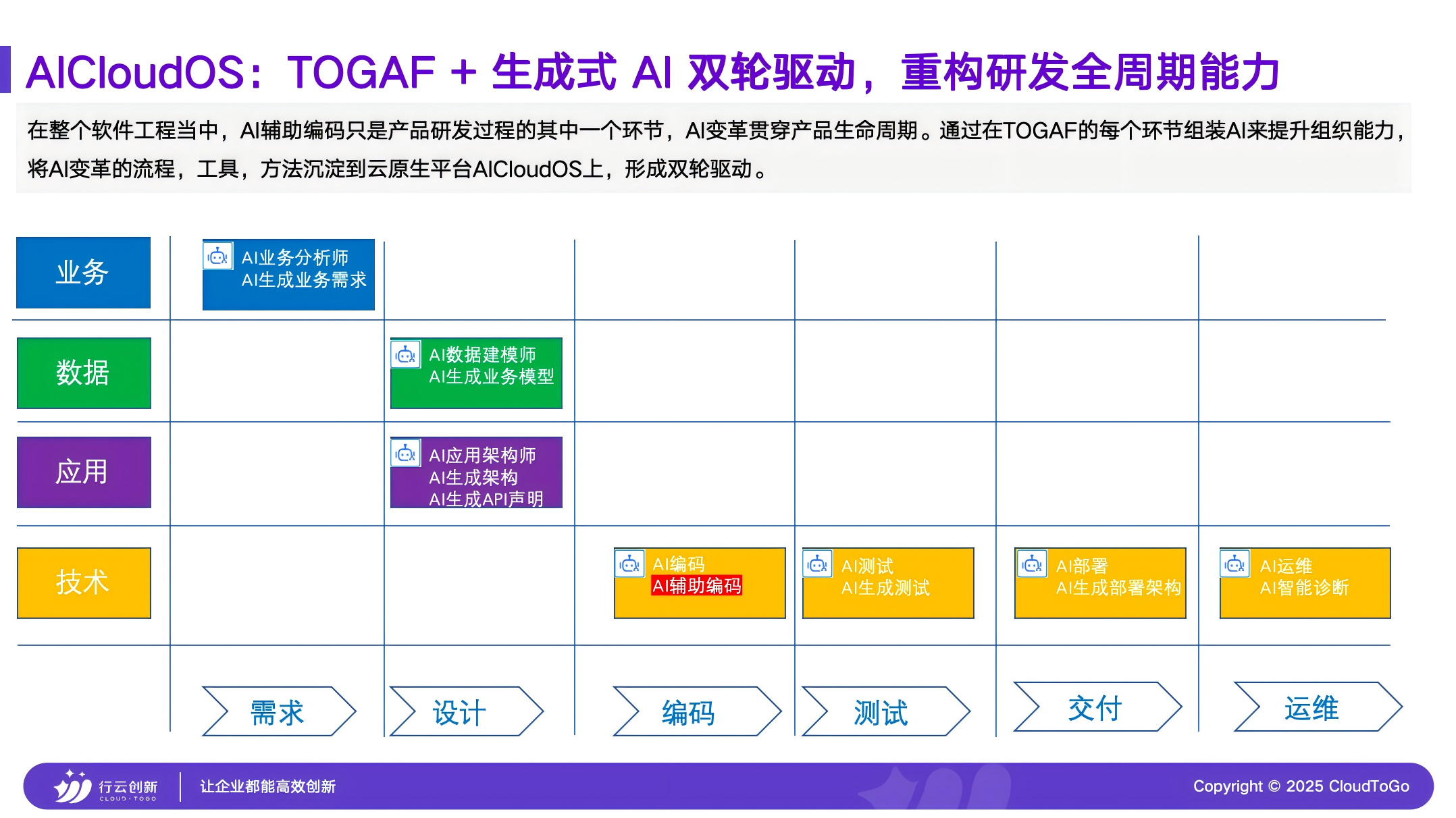 面对Gartner划定的趋势与预警,中国企业亟需一套覆盖"基础设施-研发工具-应用开发-治理运营"的全栈解决方案。行云创新AI-CloudOS产品矩阵的出现,正是对这一时代需求的精准回应。