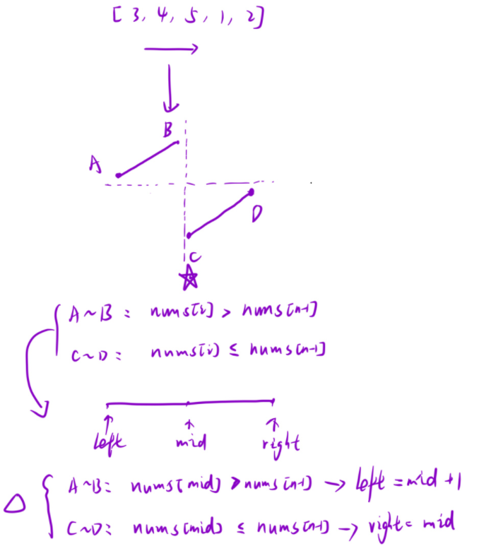A--B nums[i]>nums[n-1] C--D[i]<=nums[n-1]