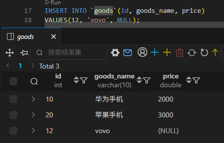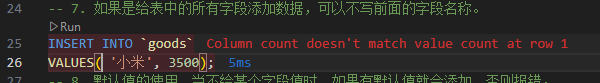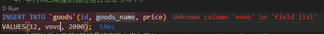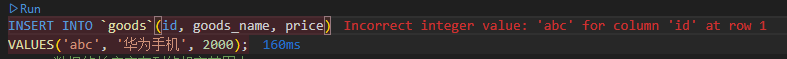 -- 例如:把'abc'添加到int类型会错误(ps:因更换电脑,这里是VScode+mysql8)