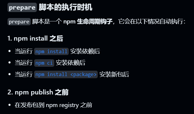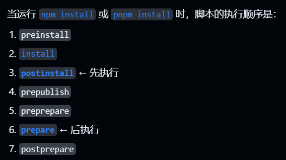 prepare会被执行两次(一次是pnpm install一次是husky install),但是没办法,prepare的顺序在postinstall之后。我必须确保husky已经安装上。